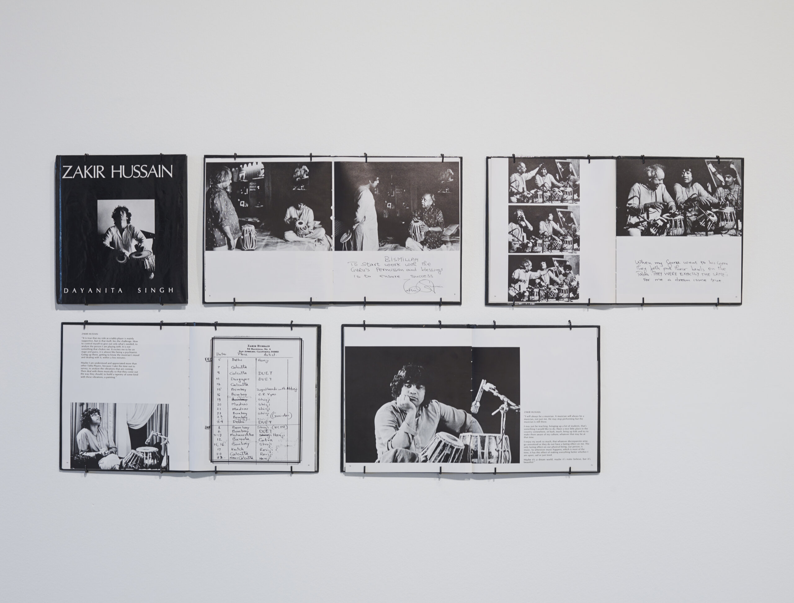 It was following Singh’s 2013 survey at the Hayward Gallery, London, in which she exhibited a copy of the book, that I became personally familiar with Zakir Hussain: A Photo Essay. When asked to contribute a text for Parkett in 2014 on Singh’s practice, I proposed writing on Zakir Hussain, which until that point had not received any scholarly attention, in part due to the fact that Singh herself had till the Hayward show renounced the book. The curator of the Hayward exhibition, Stephanie Rosenthal, gently convinced Singh that she should include the book. Slowly, Singh overcame the embarrassment she had been carrying with her about the book for more than two and half decades, and recognized that many of the chief preoccupations of her practice were already in place with Zakir Hussain—the focus on an extraordinary individual, an intuitive quality when it comes to editing, bridging the gap between word and image. When I wrote to Singh that I would be concentrating on Zakir Hussain for Parkett, she responded: “I am so happy you remembered the Zakir book, it’s the key.”