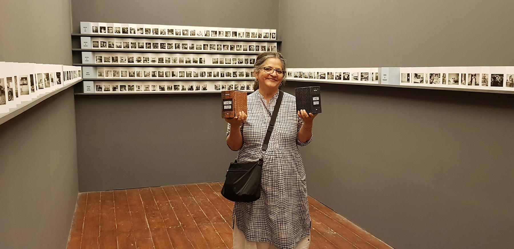 2017 : Museum Bhavan is published by Steidl. Its 3,000 individual boxes are made and shipped from India. Singh takes Museum Bhavan on a book tour to several book shops across Europe. It is also shown at the Dr. Bhau Daji Lad Museum, Mumbai (2016); Serendipity Arts Festival, Goa (2017, as shown in the corresponding image); India Art Fair, New Delhi (2017); Museum of Innocence, Istanbul (2017); Chobi Mela, Dhaka (2019); Gallery White, Baroda (2019); Off the Wall, San Francisco Museum of Modern Art (2021); as well as in several private homes.