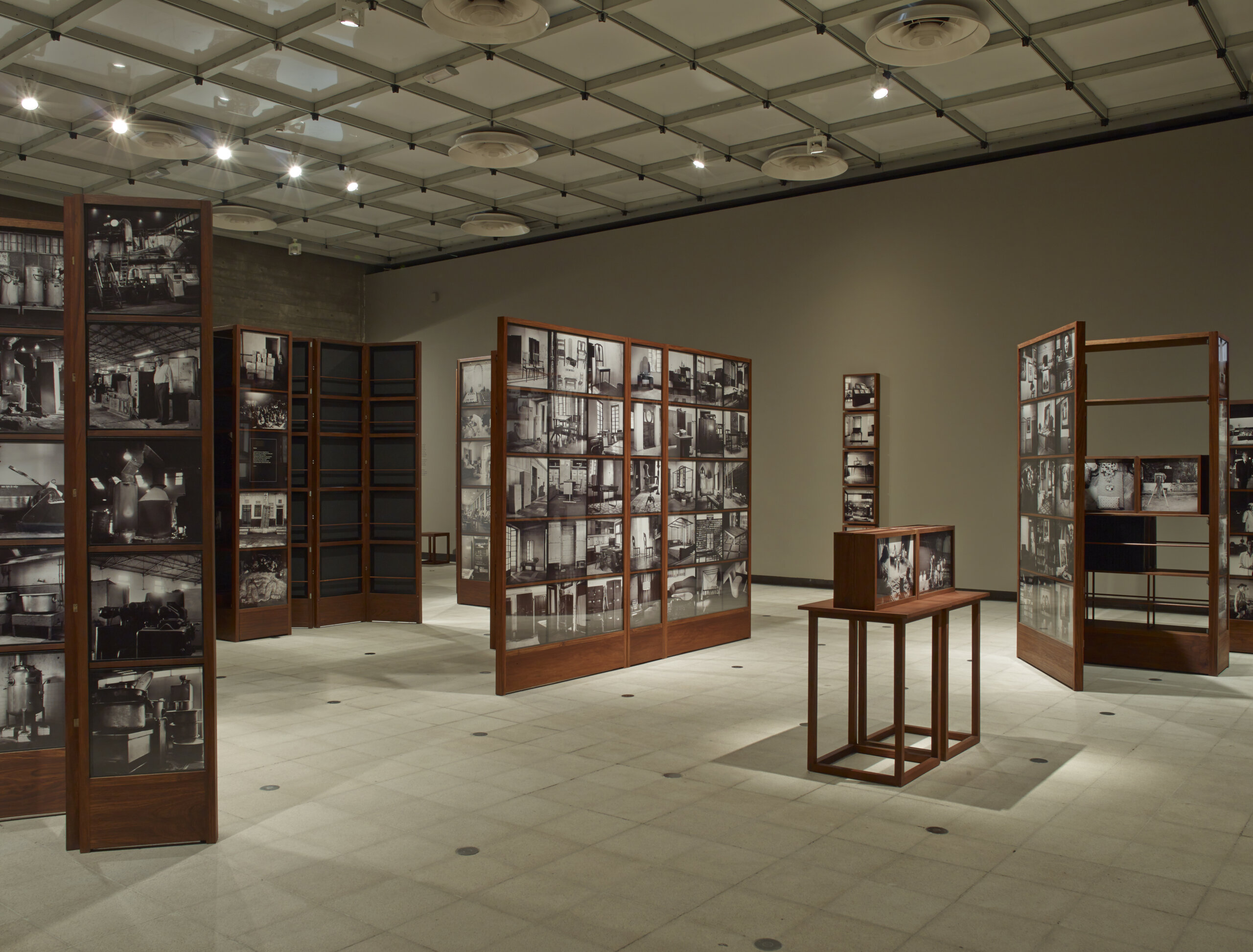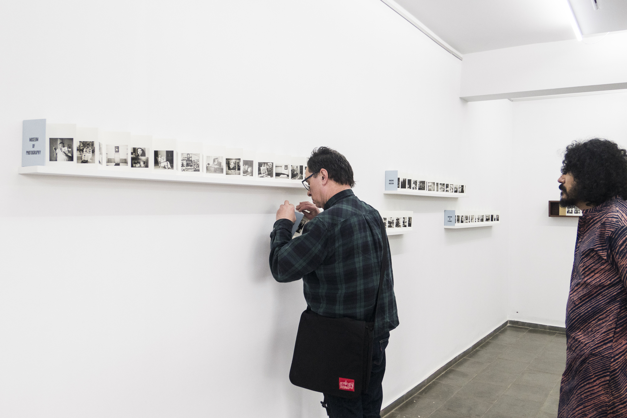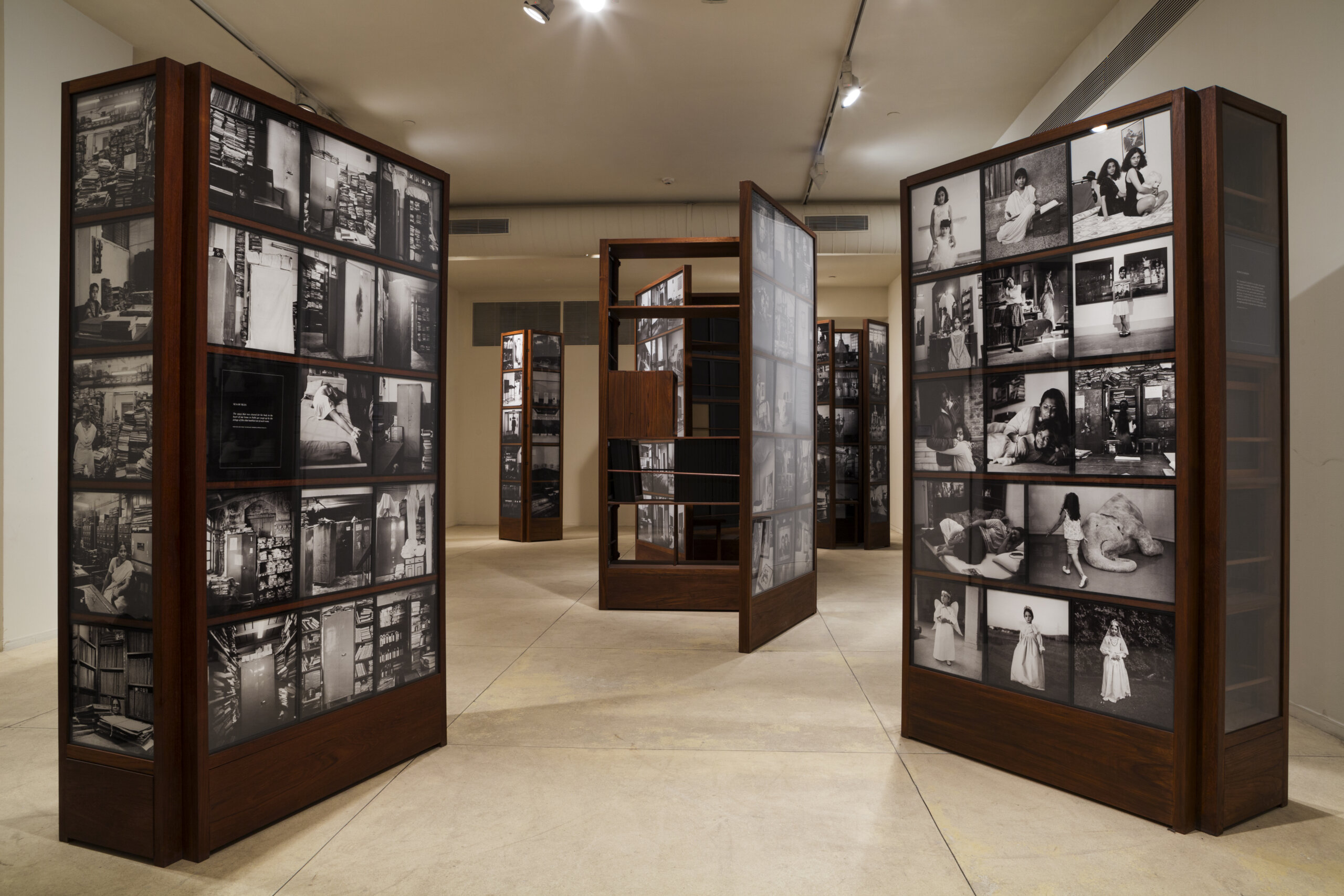 Museum Bhavan is a travelling family of nine ‘museums’ built by Singh. Each museum holds a collection of old and new images drawn from her photographic oeuvre encased in mobile wooden structures that range from 6 to 8 feet in height. The images can either be exhibited on the exterior of the wooden structure or kept in storage within. The nine museums in Museum Bhavan are: ‘File Museum,’ ‘Little Ladies Museum,’ ‘Museum of Furniture,’ ‘Museum of Vitrines,’ ‘Museum of Photography,’ ‘Museum of Men,’ ‘Museum of Machines,’ ‘The Printing Press Museum’ and ‘Museum of Chance.’ The museums are built to allow for quick changes in their images and to change the architecture of the space they are installed in. They come with their own boxes, tables, stools and benches. Combining display and storage, inside and outside, image and structure, Museum Bhavan compels viewers to engage with the physical experience of moving among the arrangements of images in the exhibition space.
