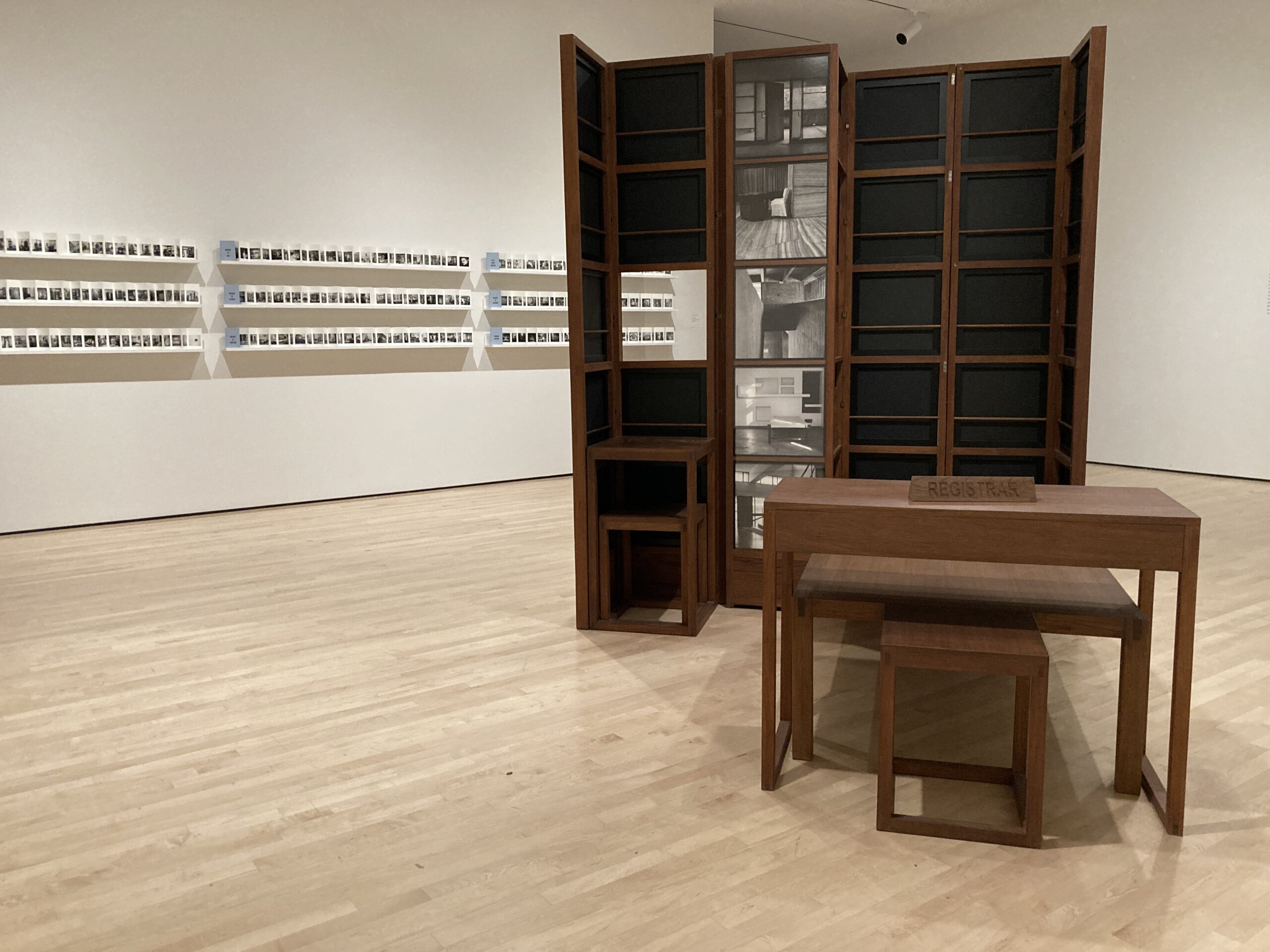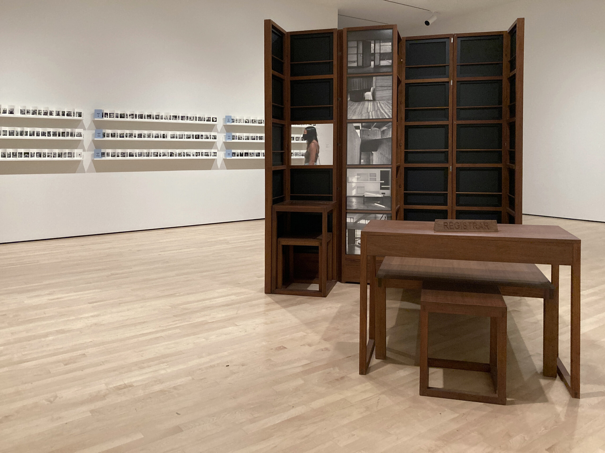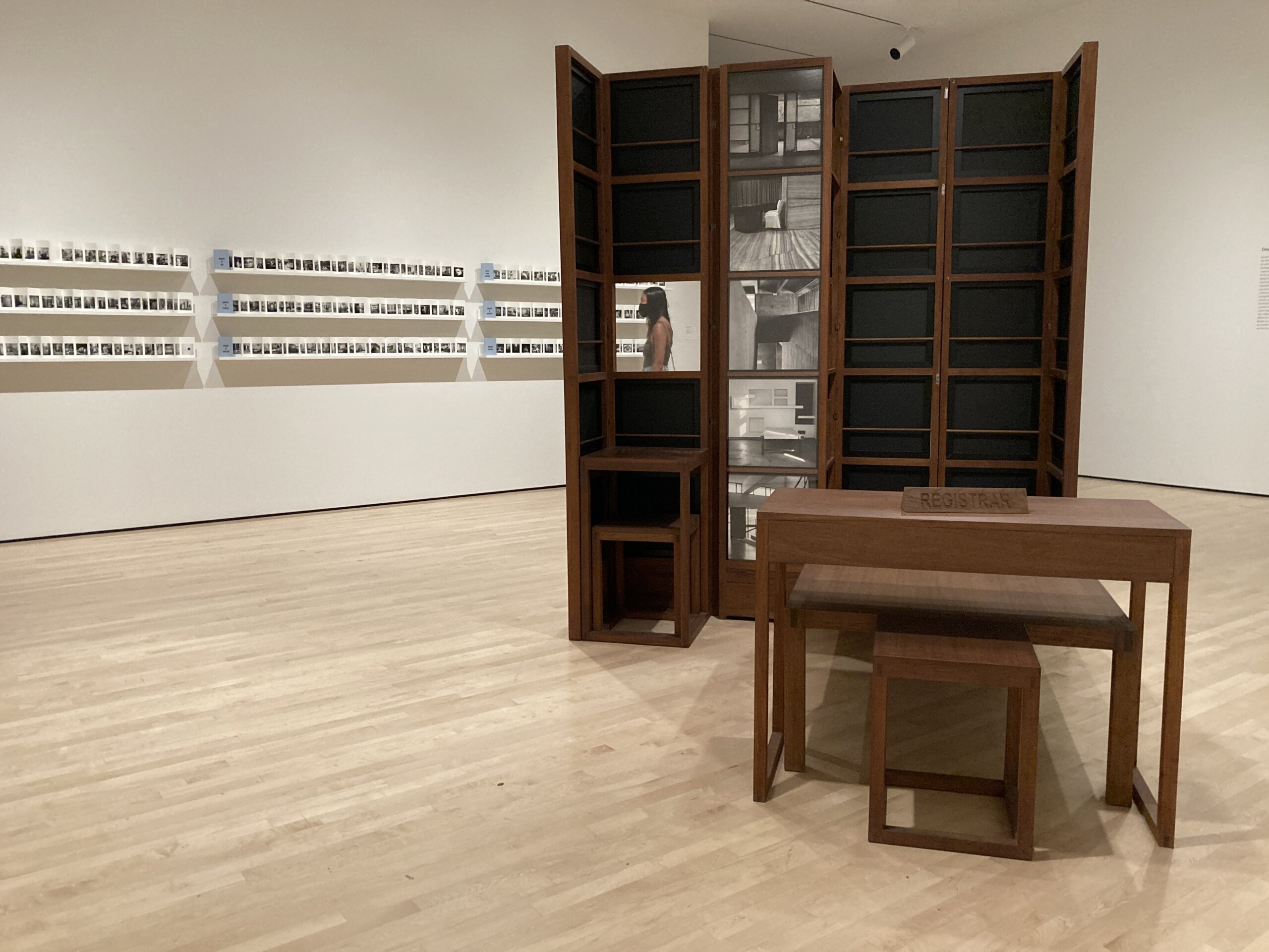 Museum Bhavan is a travelling family of nine ‘museums’ built by Singh. Each museum holds a collection of old and new images drawn from her photographic oeuvre encased in mobile wooden structures that range from 6 to 8 feet in height. The images can either be exhibited on the exterior of the wooden structure or kept in storage within. The nine museums in Museum Bhavan are: ‘File Museum,’ ‘Little Ladies Museum,’ ‘Museum of Furniture,’ ‘Museum of Vitrines,’ ‘Museum of Photography,’ ‘Museum of Men,’ ‘Museum of Machines,’ ‘The Printing Press Museum’ and ‘Museum of Chance.’ The museums are built to allow for quick changes in their images and to change the architecture of the space they are installed in. They come with their own boxes, tables, stools and benches. Combining display and storage, inside and outside, image and structure, Museum Bhavan compels viewers to engage with the physical experience of moving among the arrangements of images in the exhibition space.