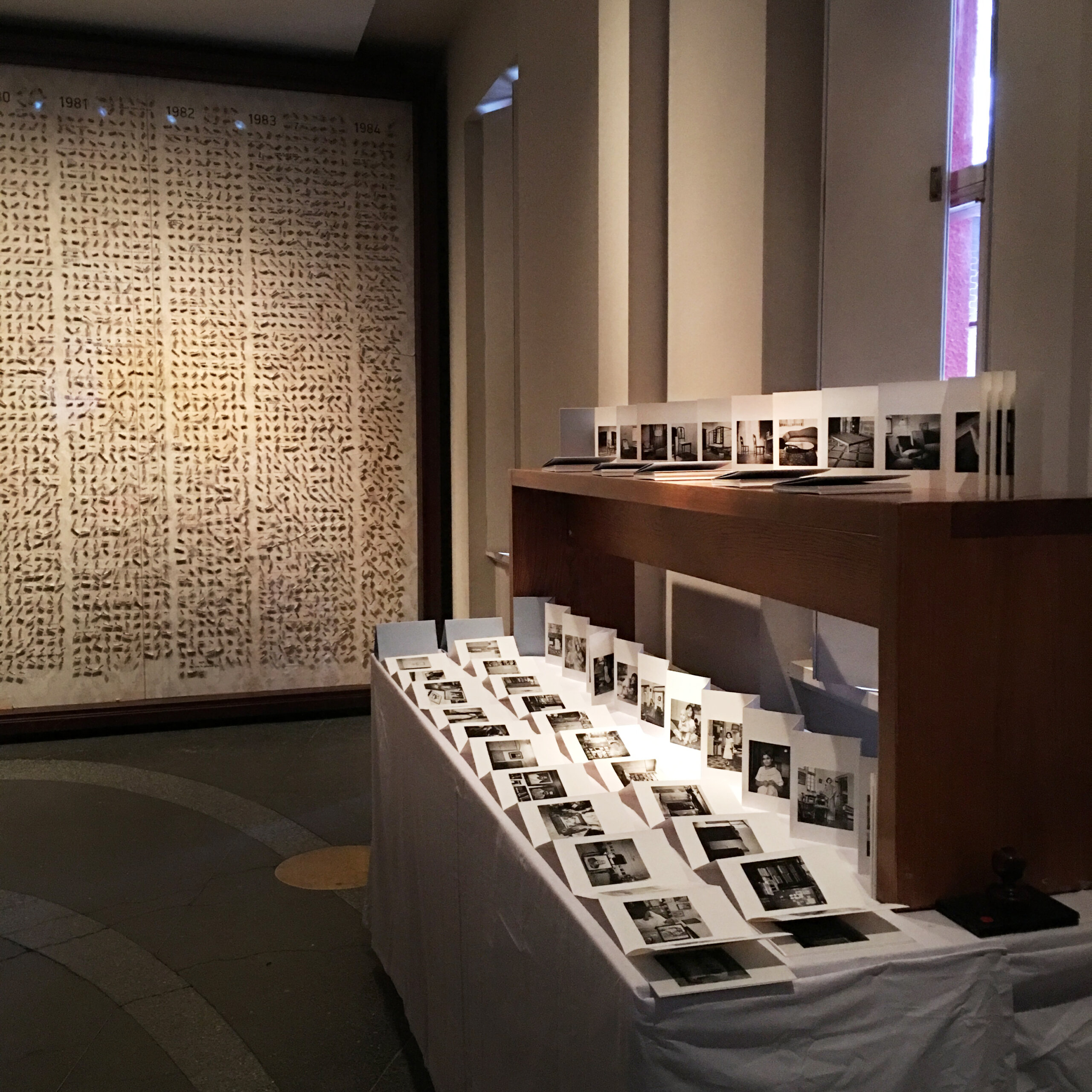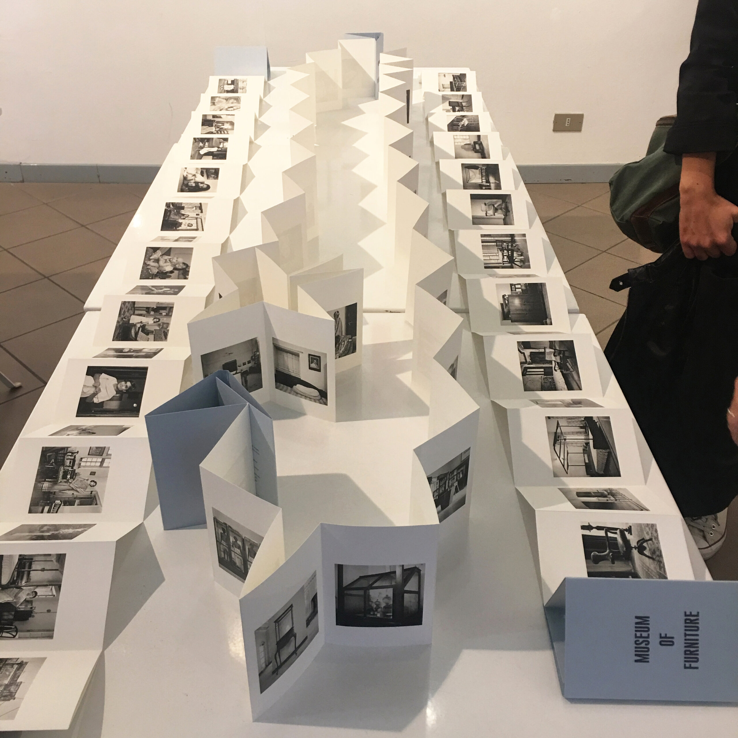 ‘Museum of Chance’, however, has a slightly different architecture. At 8 feet, it is more monumental in scale, with wings that open outward from the central storage spine, fanning out like pages from Singh’s accordion-fold books. The structure of ‘Museum of Chance’ is inspired directly by Singh’s book Sent a Letter (2008), which has a box for storage (akin to the museum’s central pillar) and accordion-fold books that become exhibitions when they are unfurled (like the museum’s hinged panels).