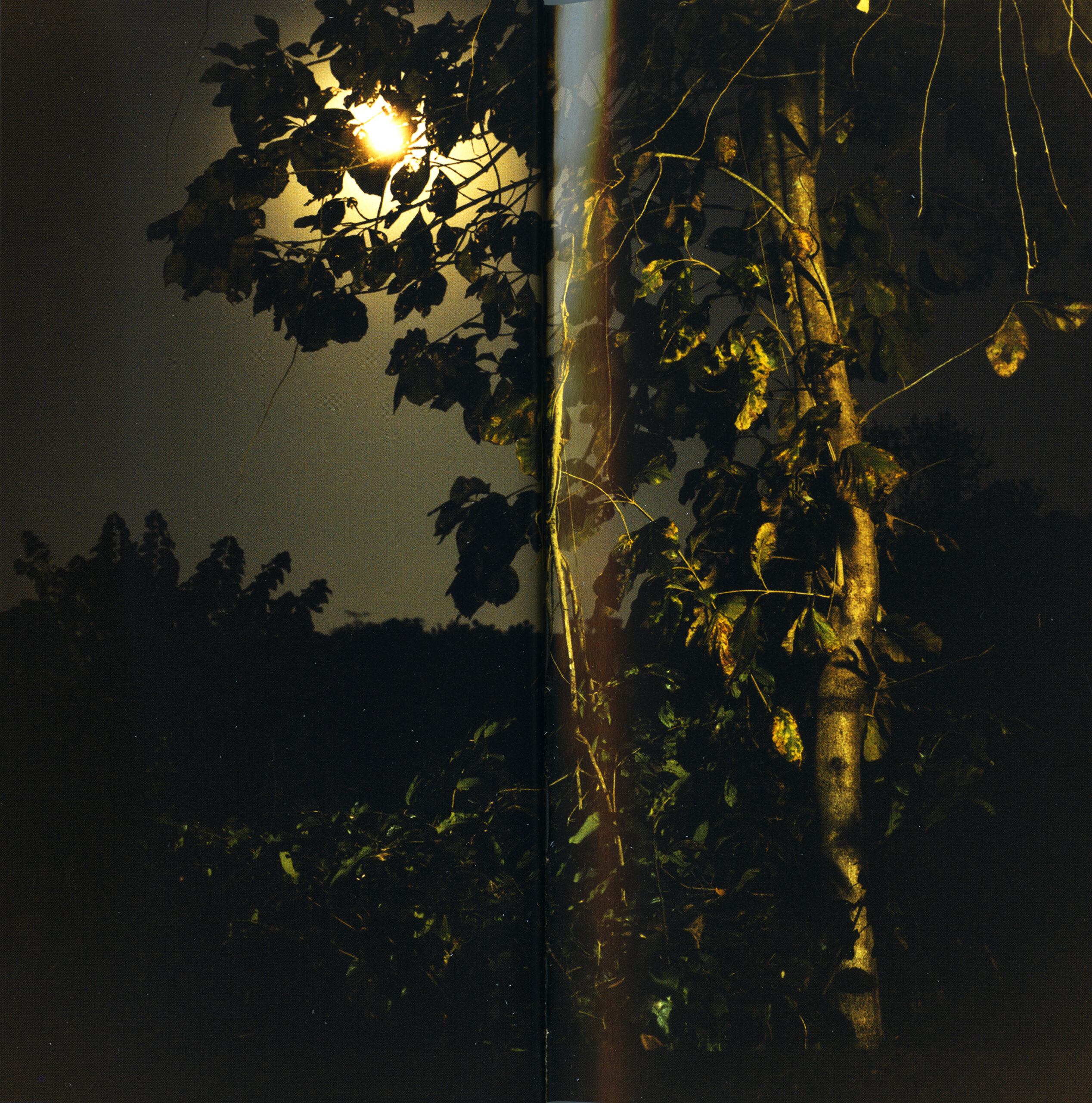 Singh was clear that she wanted these images to be full-bleed, knowing that white margins, edges and space would deaden the nocturnal images’ dramatic quality. Initially, this created a design problem. The options were to either keep one page blank and then do a bleed, or to put two full bleeds side by side. However, neither worked: the former created a preciousness around each image while the latter fused two photographs across a spread, forcing them to be read together as one.