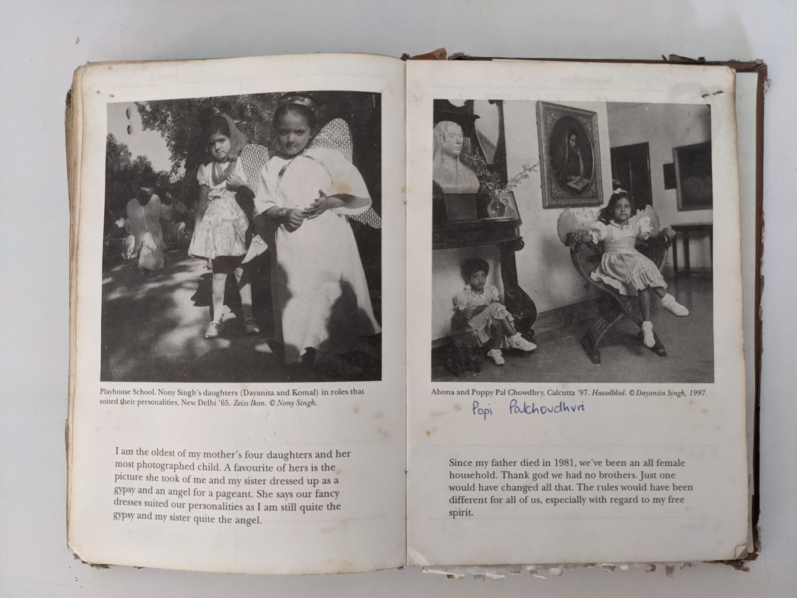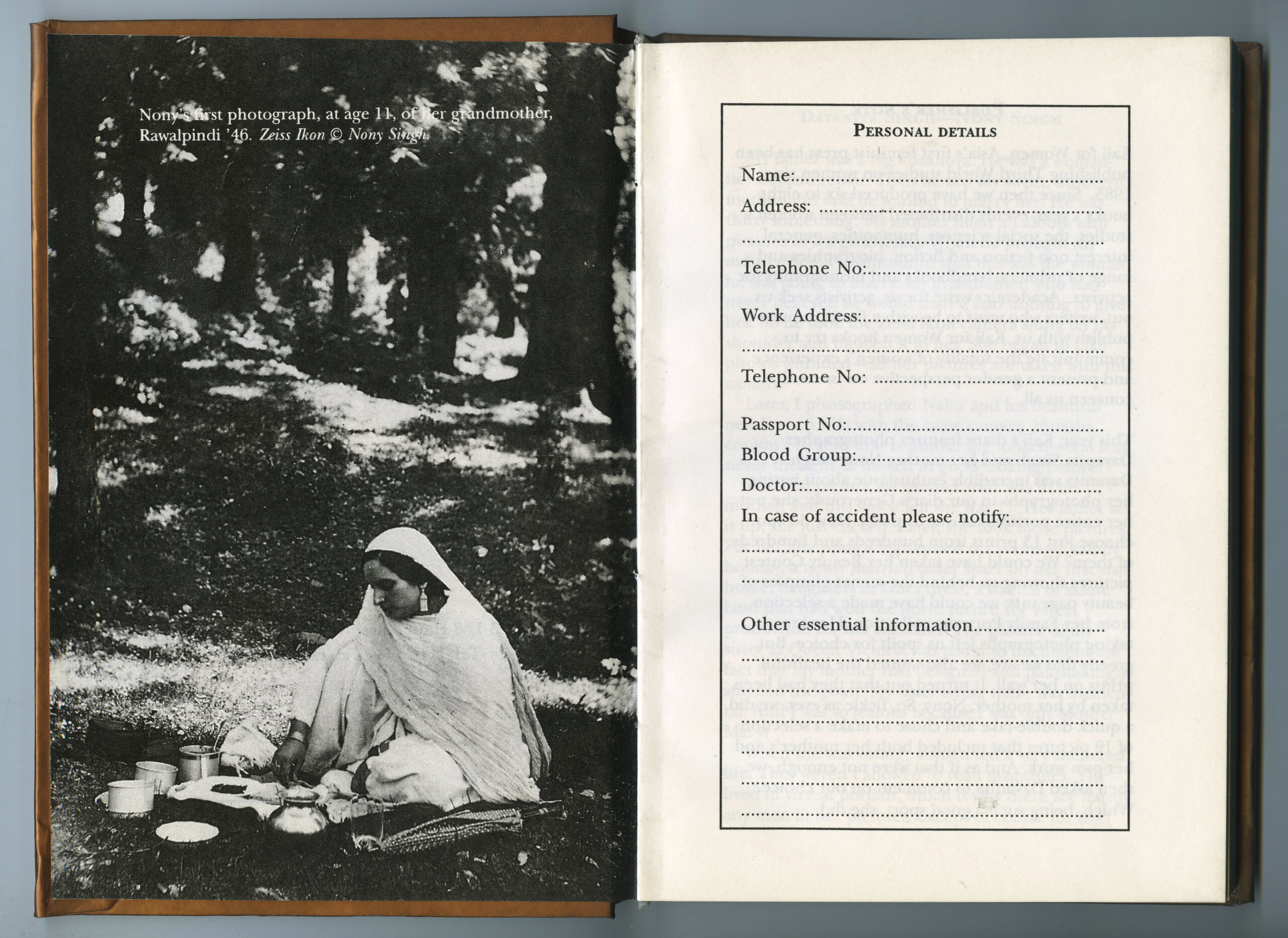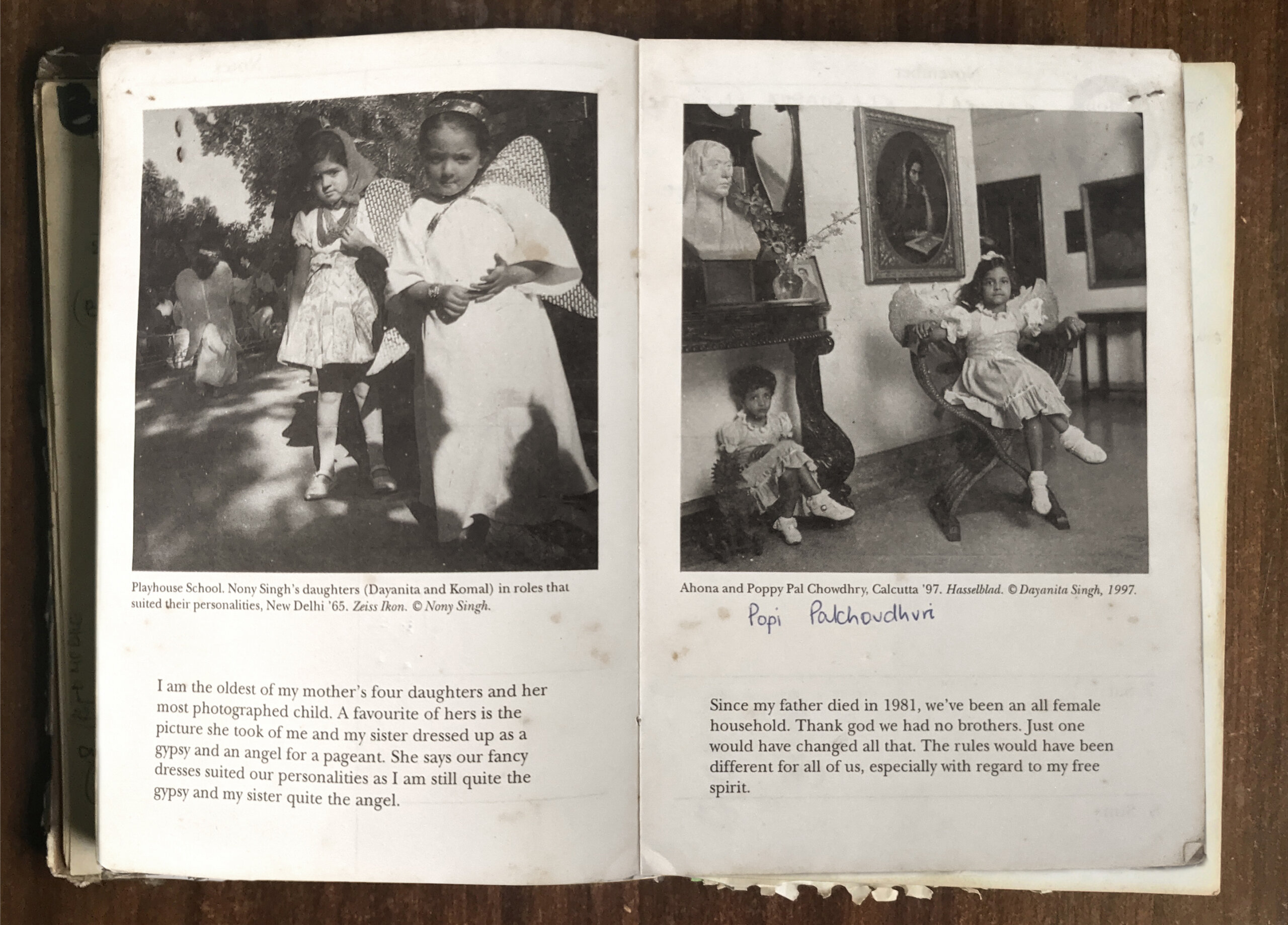 Inspired by these discoveries in similitude, Singh and the Kali publishers created an edit of 19 images that placed some of Singh’s family portraits alongside pictures that Nony Singh had made of her own family (often of Singh and her sister as children). Accompanying each photo was a detailed caption and backstory, lovingly written by Singh. Although the diary was not a book in the traditional sense, Singh was gratified to see the new ways in which it allowed her photographs to circulate. “It was wonderful that people were really handling the images every day,” she says. “I loved that they were living in people’s handbags and being opened and looked at all the time.” She was also delighted to learn that a few patrons had turned the planner into a phone diary, which meant that the book, in one case, was used for more than a decade.