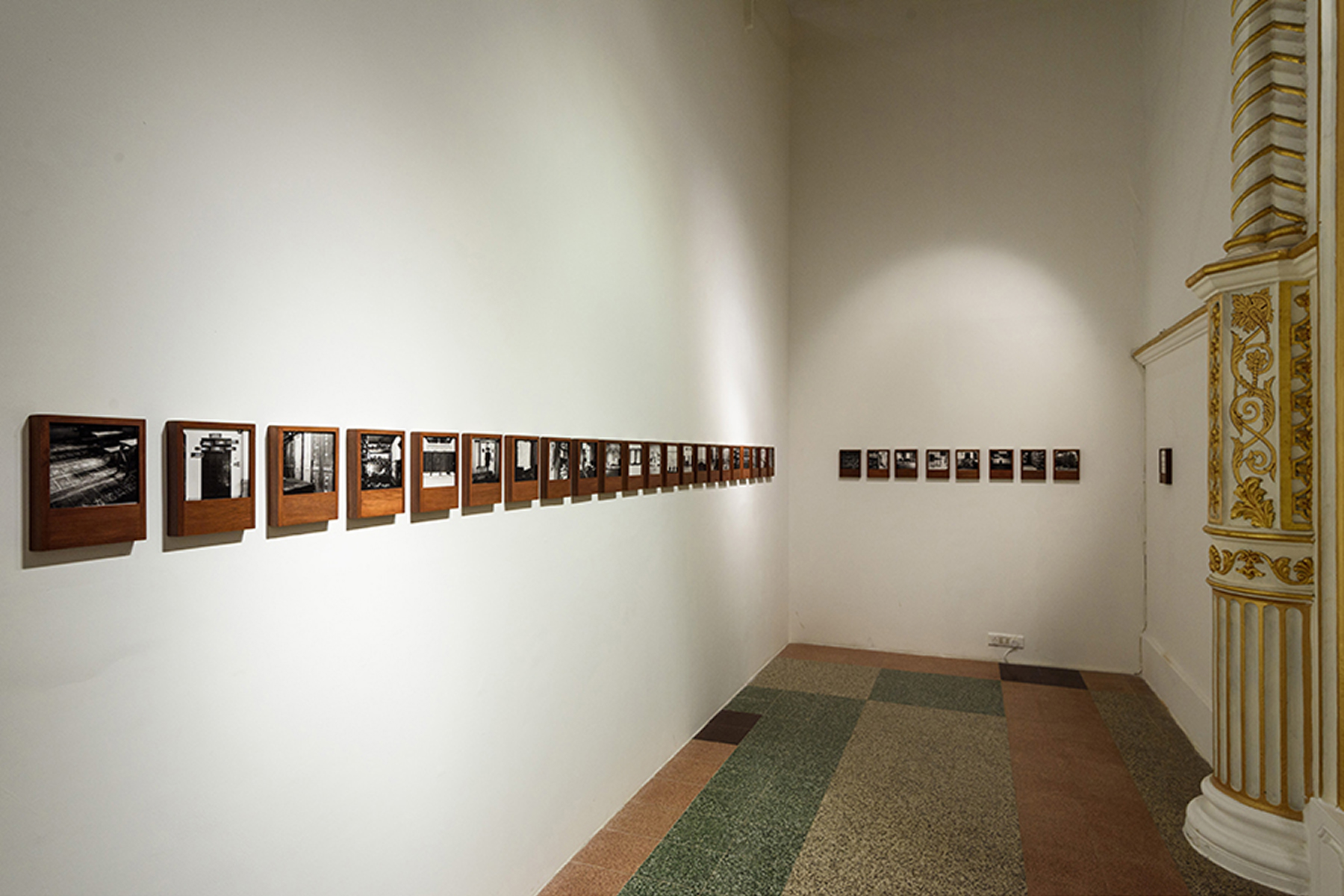The Kochi Box is an unbound book that contains 31 images that Dayanita Singh made in Kerala, including several that were made in various archives across the state. These 31 images are printed on card and placed in a wooden box. The box can then be hung on the wall, turning the book into an exhibition. The front window of the box serves as a frame for the image and back window works as a hanging device.